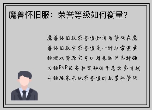 在魔兽怀旧服中,荣誉值是一种非常重要的游戏资源,它可以用来购买各种强力的PvP装备和奖励。对于喜欢参与战斗的玩家来说,荣誉值的积累和等级的提升是一项重要的目标。本文将从多个方面详细阐述魔兽怀旧服荣誉值如何看等级。